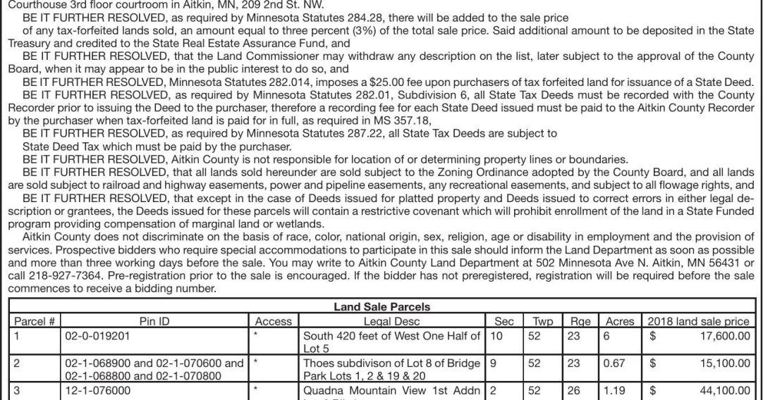Aitkin County Tax-Forfeited Land Sale Friday December 2 2022 at 100 pm. Order your 2020 Aitkin. The county is then responsible for management of the tax.